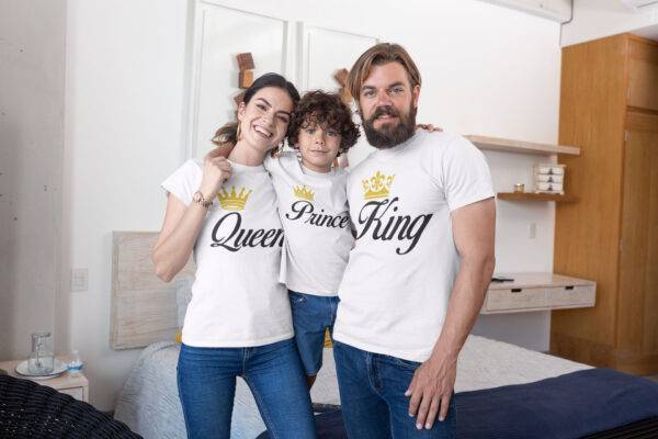 Prisrčen komplet kraljevih majic za vso družino. Majice so odlično darilo za mnoge priložnosti.