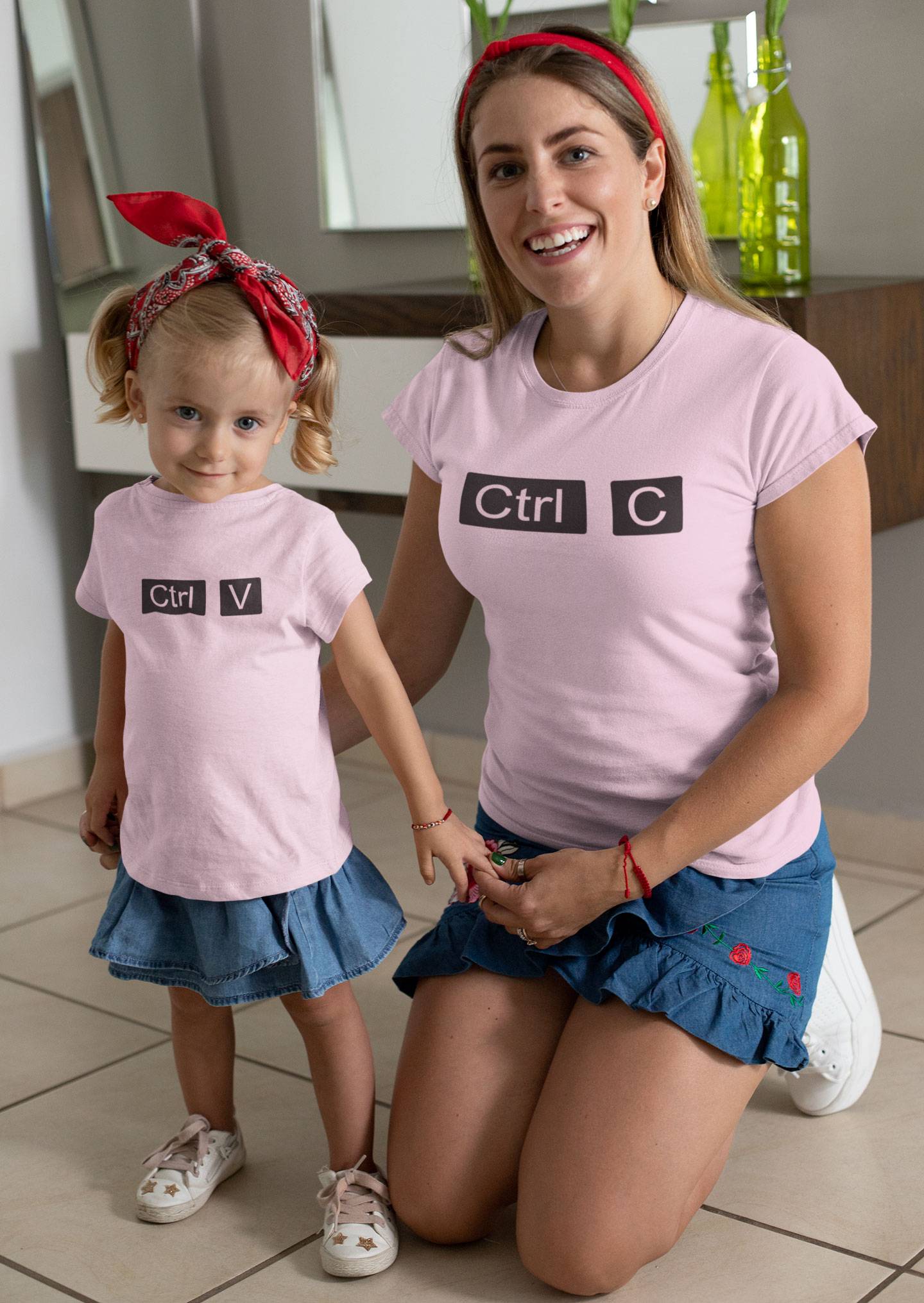 Komplet družinskih majic ctrl C in Crtl V. Kompleti so na voljo za mami in hči ali za očeta in sina. Odlično darilo.