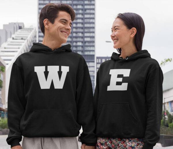 Komplet puloverjev z napisom za pare “We”. Pulover z napisom je odlično in uporabno darilo. Top darilo za valentinovo, obletnico.