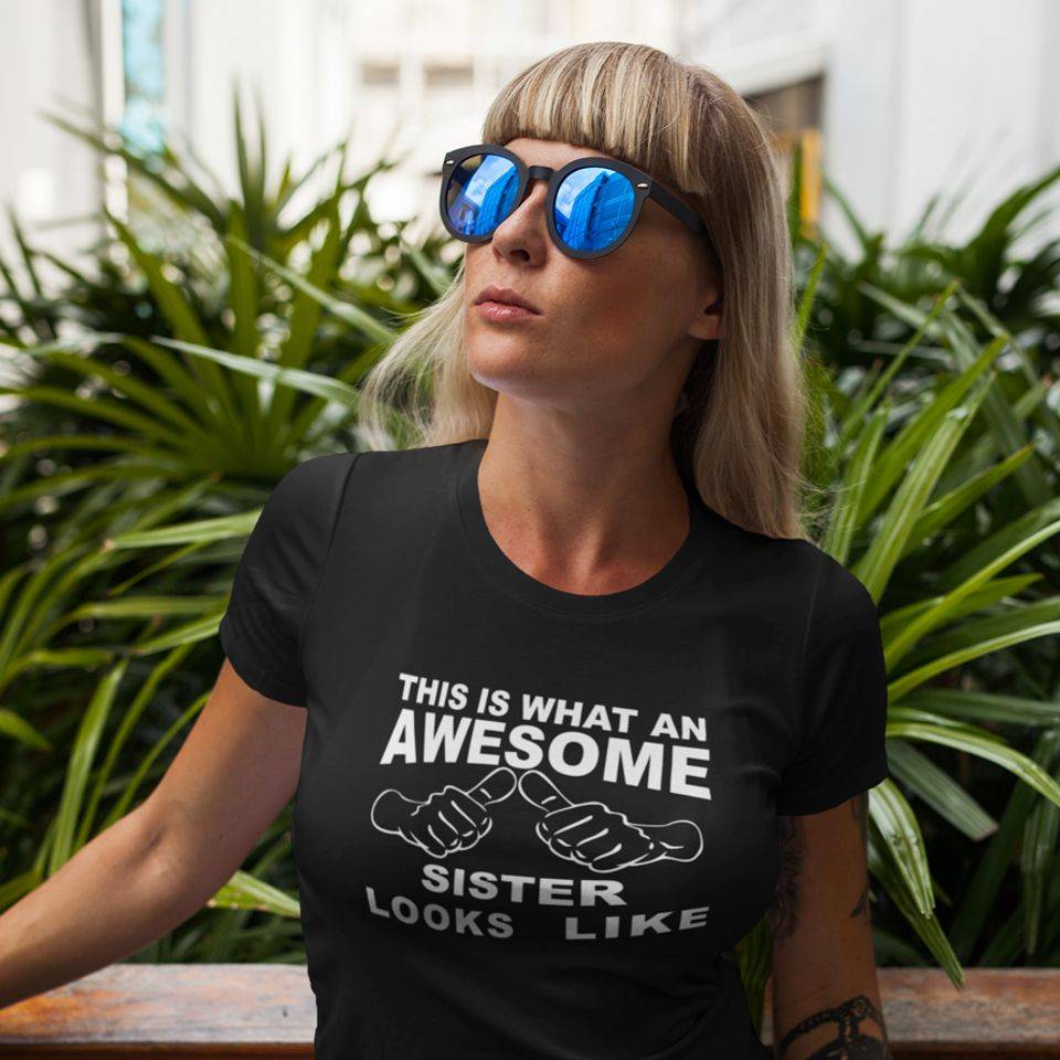 Smešna majica z napisom This is what an awesome sister looks like. Top majica primerna kot saljivo in uporabno darilo .