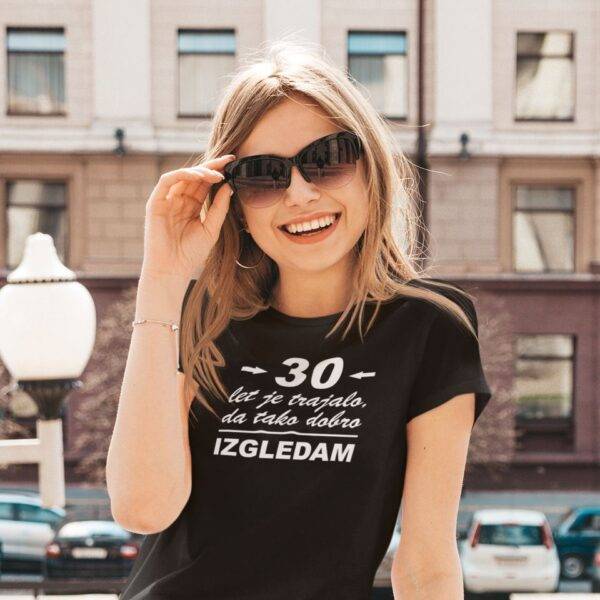 Smešna majica z napisom “30 let je trajalo da tako dobro izgledam”. Majica je uporabna kot šaljivo in uporabno darilo. Top majica.