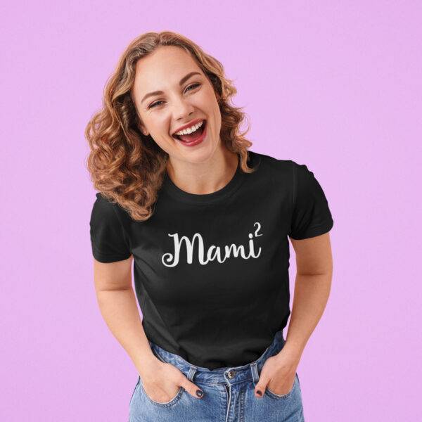 Majica z napisom “Mami na kvadrat”. Majica je odlično darilo za mnoge priložnosti.