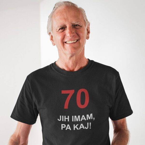 Smešna majica z napisom za rojstni dan “70 jih imam pa kaj “.Top majica za darilo. Majice so uporabno darilo za rojstni dan.