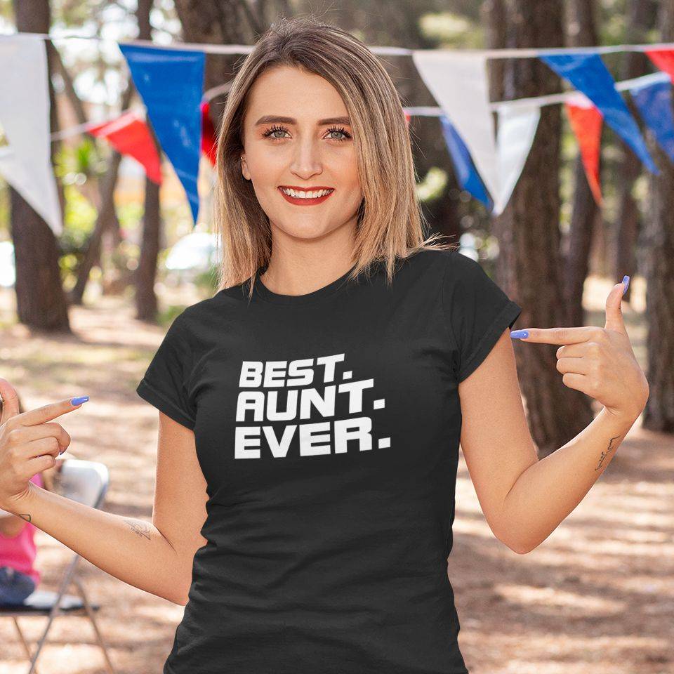 Majica z napisom “best aunt ever”. Majica je odlično darilo za tetin rojstni dan, božic ali kar tako. Top majica.