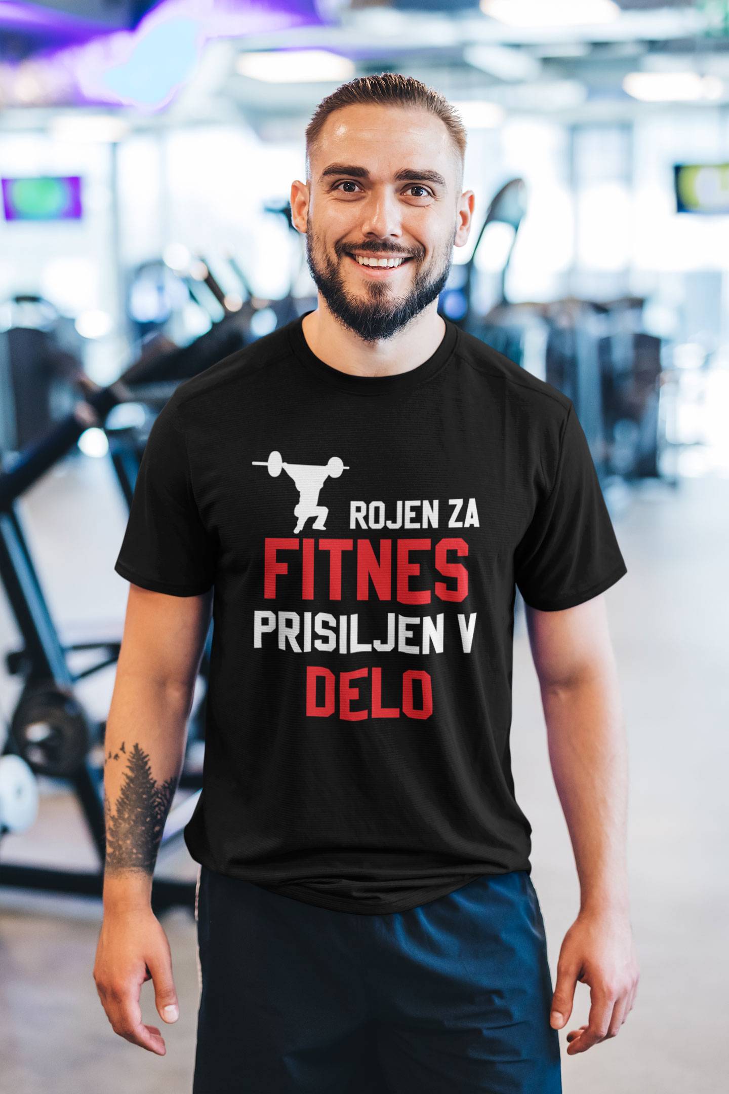 Smešna majica z napisom “rojen za fitnes prisiljen v delo”