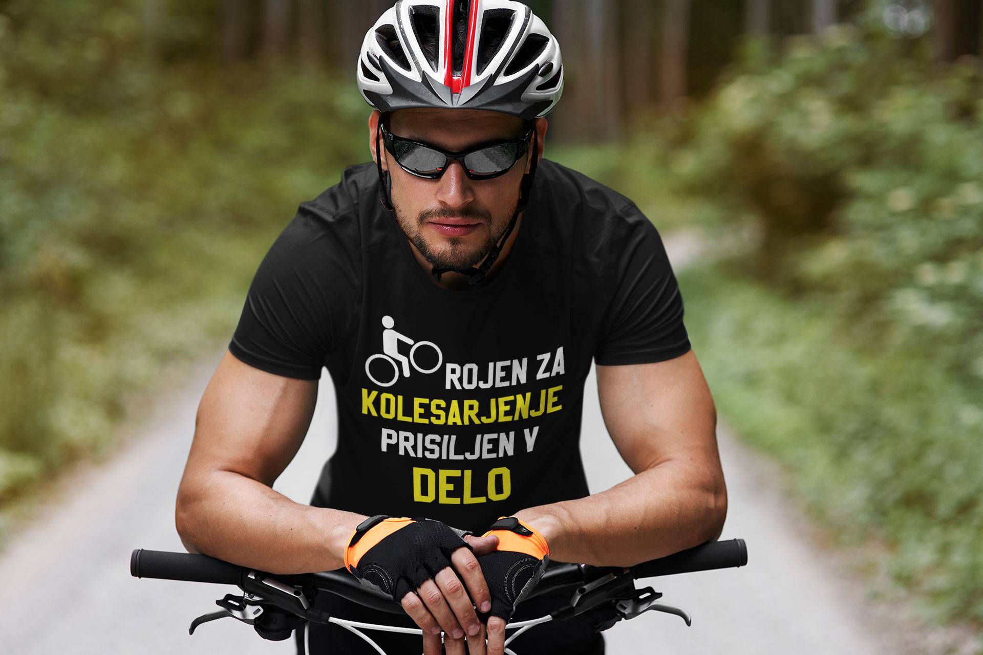 Smešna majica z napisom “rojen za kolesarjenje prisiljen v delo”
