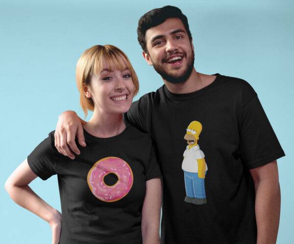 Komplet majic za pare “Homer in donat”. Majice za pare so odlično darilo.