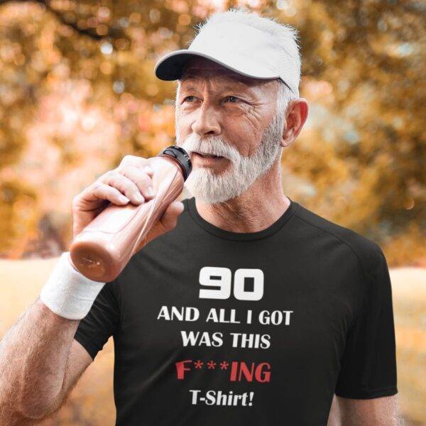 Smešna majica z napisom “90 and all i got was this f***ing t-shirt”. Majica s potiskom je uporabno in zanimivo darilo ob rojstnem dnevu.
