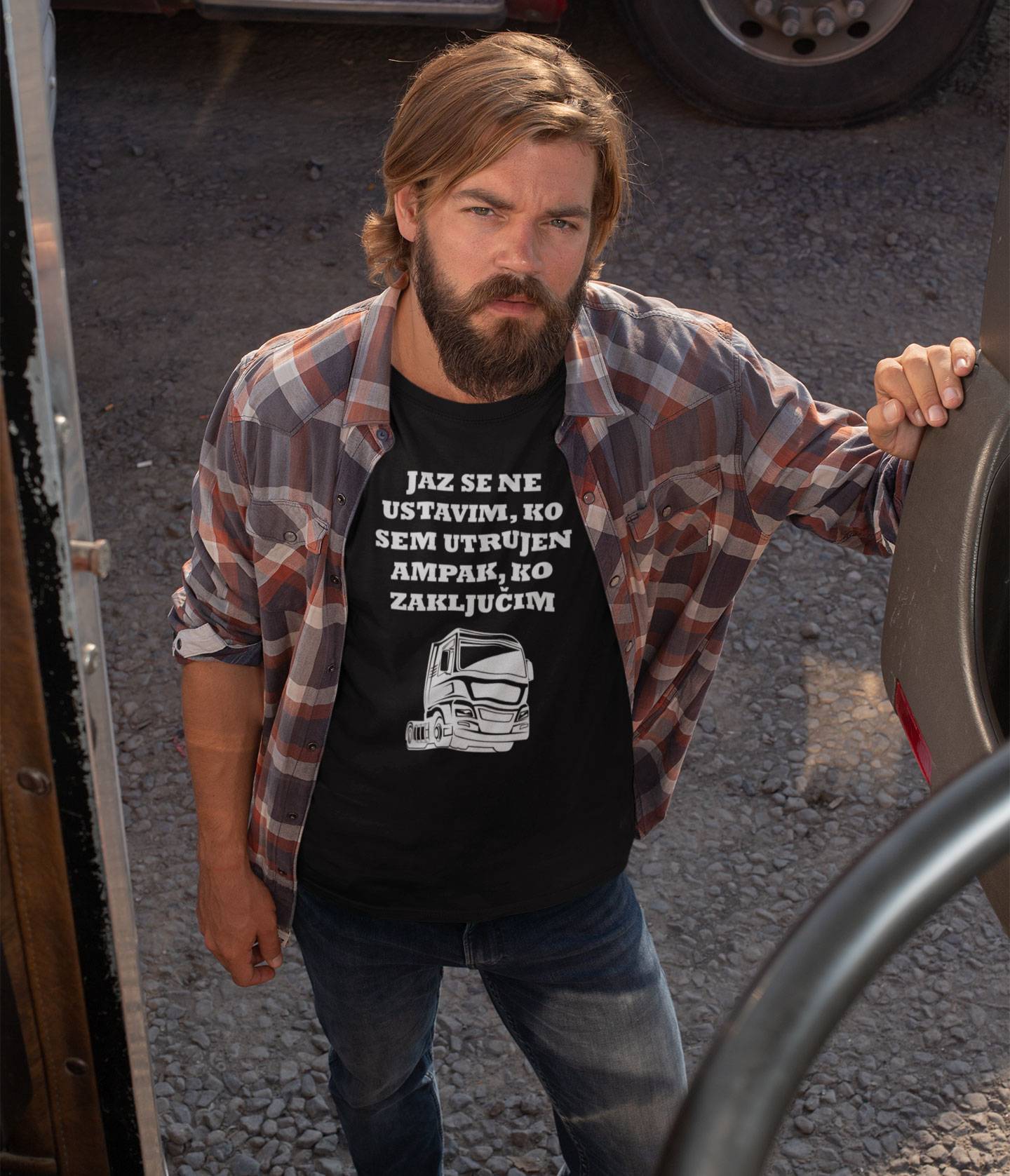 Majica za voznika tovornjaka “jaz se ne ustavim, ko sem utrujen, ampak ko zaključim”. Majica je odlično darilo.