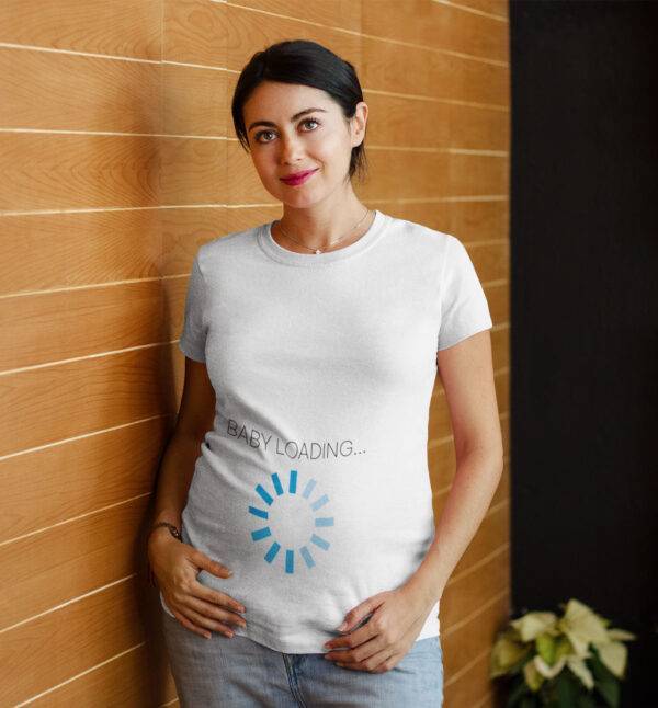 Majica za nosečnice z napisom “Baby loading”. Možnost izbire barve motiva glede na spol otorka. Majica je odlično darilo.