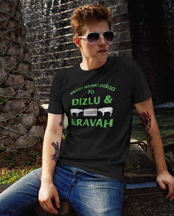 Smešna majica z napisom “pravi moški dišijo po dizlu & kravah”