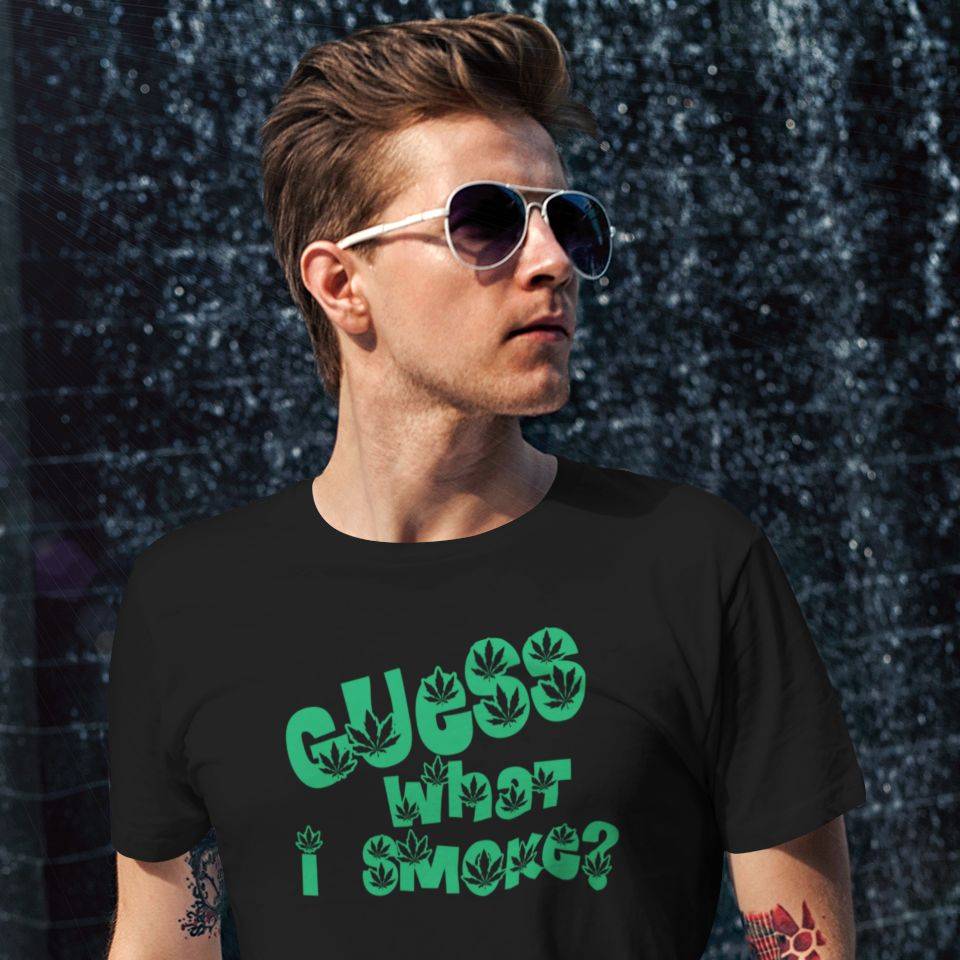 Potiskana majica z napisom “guess what i smoke” . Majica je primerna kot zabavno in uporabno darilo. Top majica za ljubitelje trave.