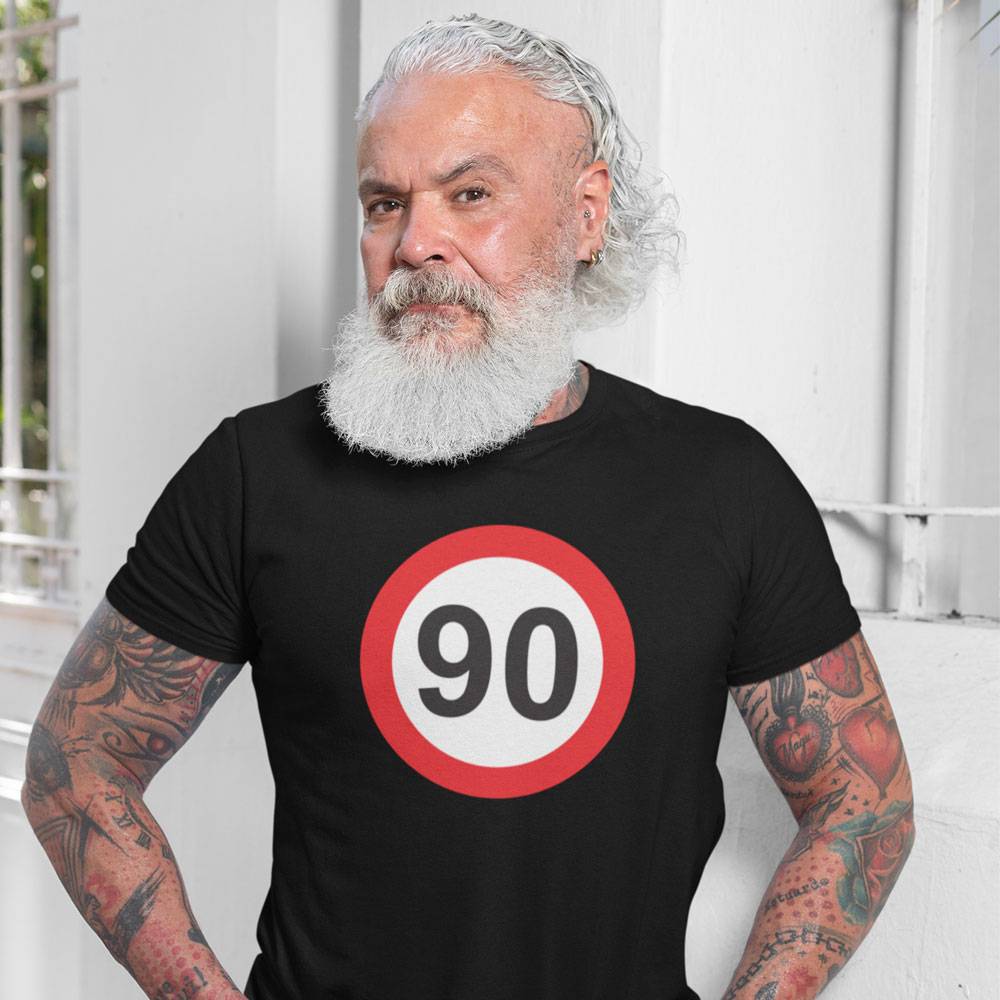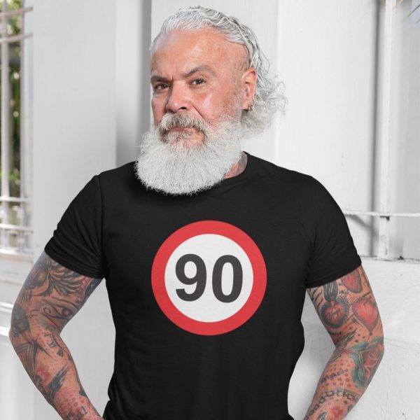 Smešna majica z motivom za rojstni dan znak 90. Majica je odlična kot šaljivo in uporabno darilo za 90 let.