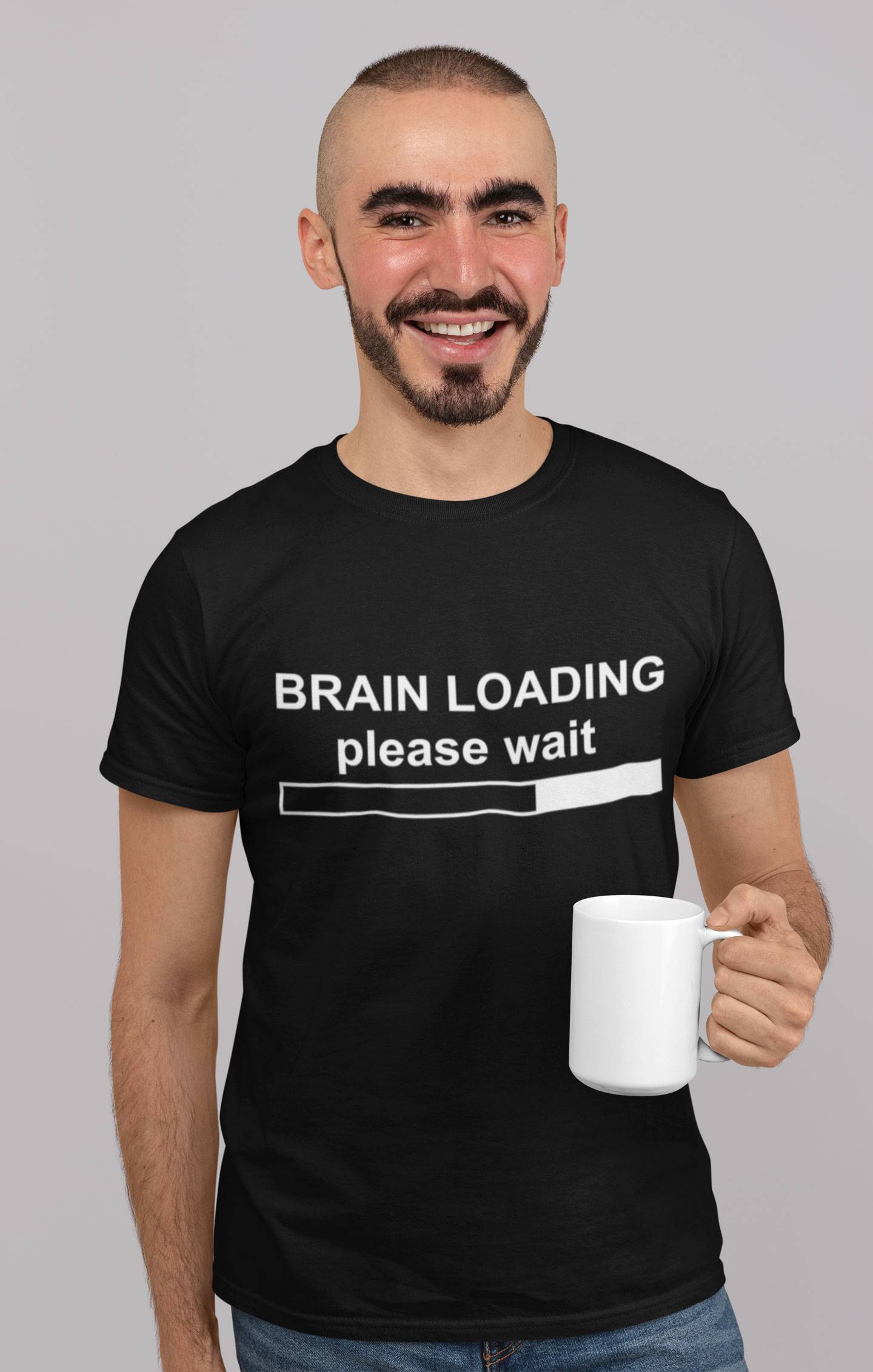 Smešna majica z napisom ” Brain loading please wait”. Top majica primerna za šaljivo in uporabno darilo ob različnih priložnostih.