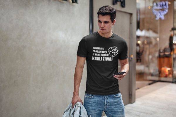 Smešna majica z napisom ” Dokler ne probam leva je zame prašič kralj živali. Zabavna provokativna majica odlična kot darilo.