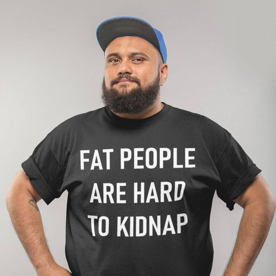 Smešna majica s potiskom ” Fat people are hard to kidnap “. Majica je odlično in uporabno darilo ob različnih priložnostih.