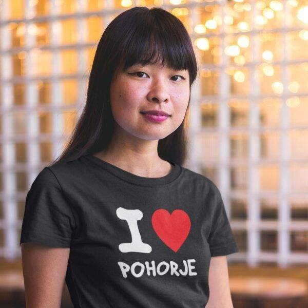 Majica s smešnim napisom “I love Pohorje”. Majica je odlično darilo in uporabno darilo ob različnih priložnostih. Top majica .