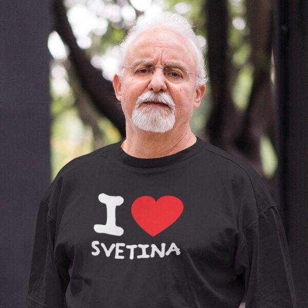Majica s smešnim napisom “I love Svetina”. Majica je odlično darilo in uporabno darilo ob različnih priložnostih. Top majica .