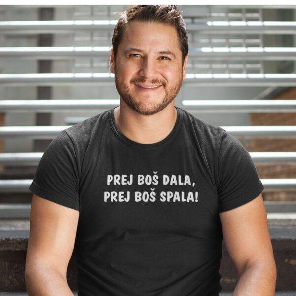 Potiskana majica z provokativnim napisom “prej bos dala prej bos spala”. Top majica za provociranje. Majica je primerna kot šaljivo darilo.