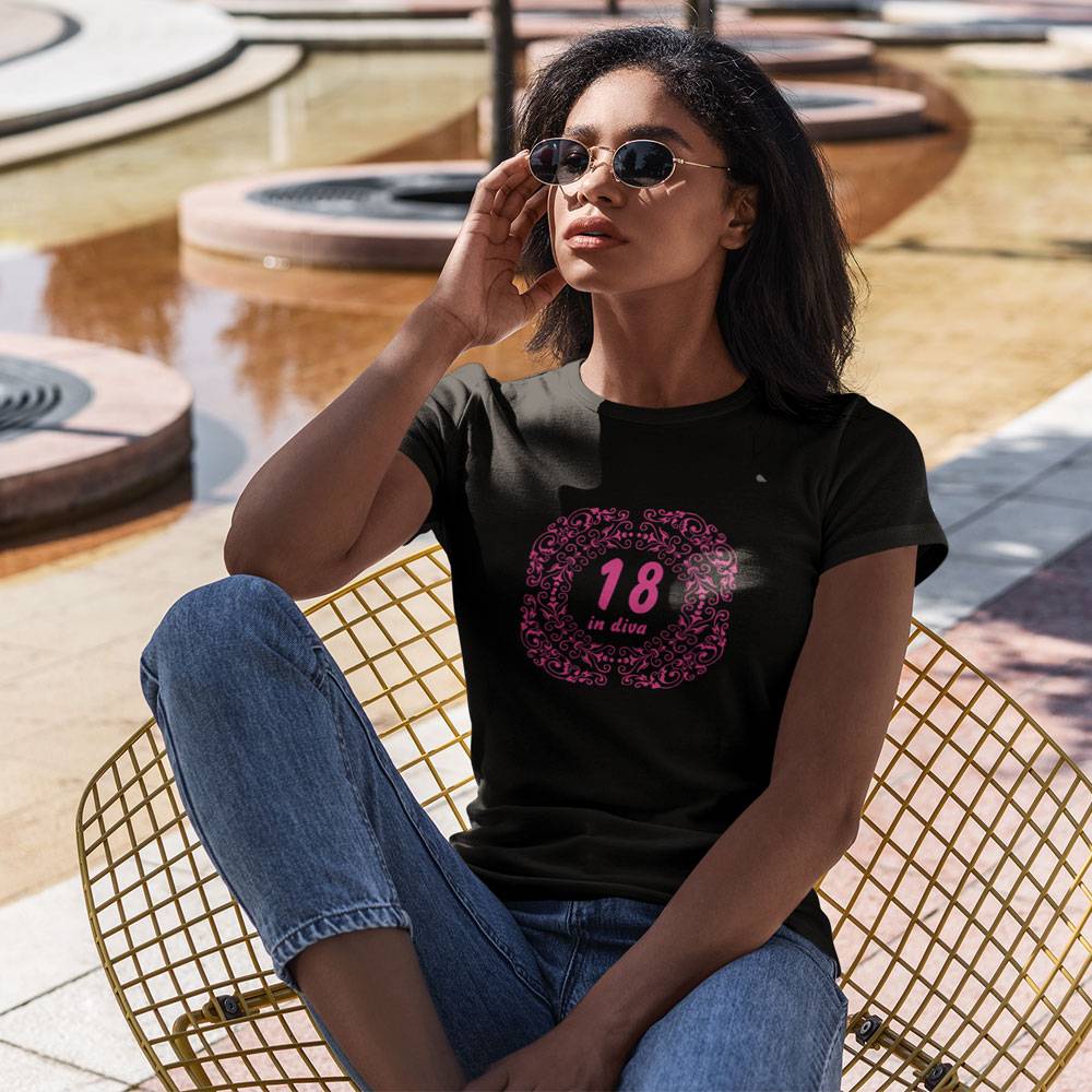 Smešna majica za rojstni dan -18 in diva. Odlično in uporabno darilo za 18 let.