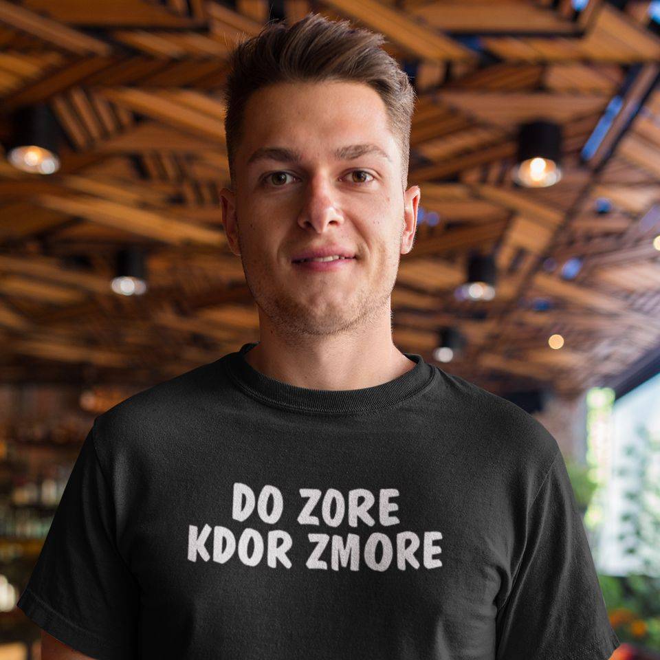 Smešna pivska majica z napisom “do zore kdor zmore”. Majica je primerna kot uporabno darilo za raznovrstne priložnosti.